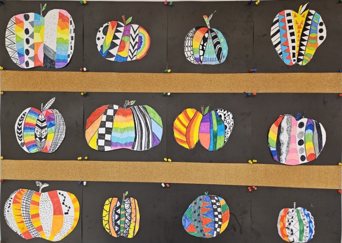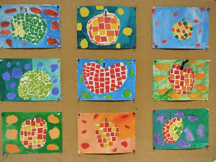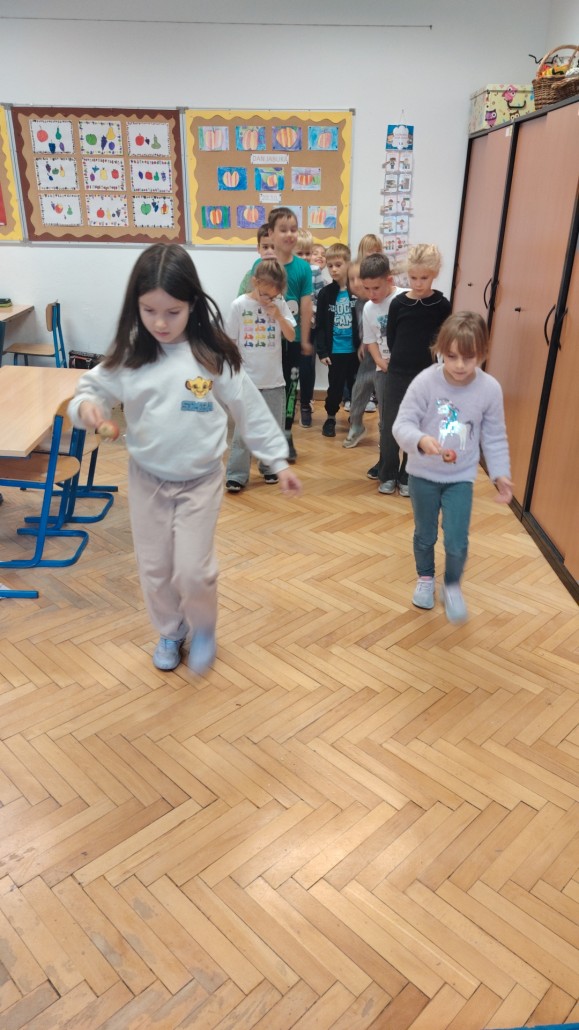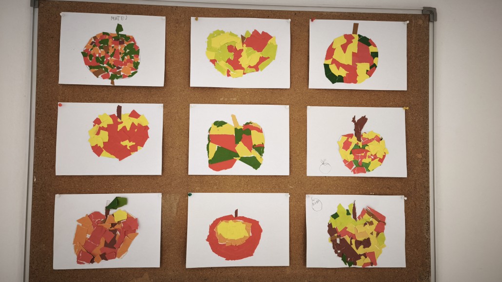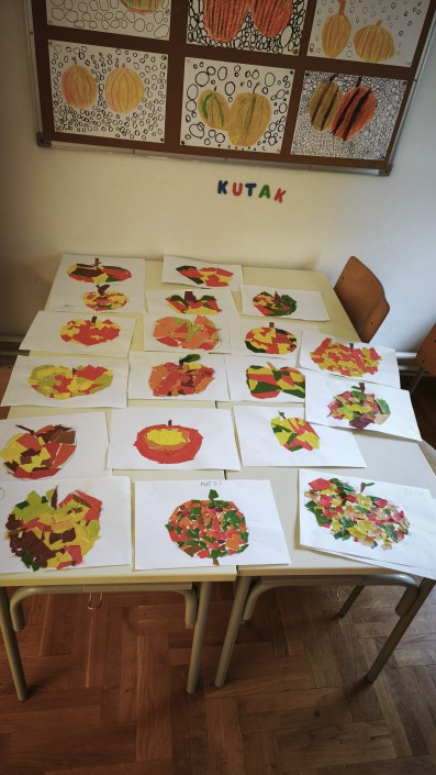 U našu školu ušla je jesen u svojim lijepim toplim bojama, mirisima i plodovima prirode. Učenici od 1. do 4. razreda su kroz razne aktivnosti obilježili dolazak jeseni i Svjetski dan jabuka. Oslikavali su jabuke u kontrastu toplih i hladnih boja te u kromatsko-akromatskom kontrastu istražujući razinu svjetline i tonova. Slikali su i veseli „mozaik jabuka“ od kolaž papira, koji je potaknuo maštu i kreativnost, a neki su i utrkom s jabukama, noseći jabuke u žlicama, odmjerili spretnost i brzinu između dvije kolone.
