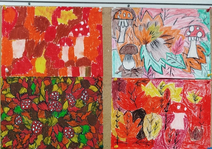 Jesensku temu dodatno su upotpunili oblikovanjem jesenskih plodova plastelinom, donošenjem jesenskih plodova u školu i ukrašavanjem jesenske košare te crtanjem i slikanjem klipova kukuruza, bundeva, gljiva, suncokreta i šarenog lišća, kojima su učionice oživjele u toplim bojama i mirisima ovog godišnjeg doba.