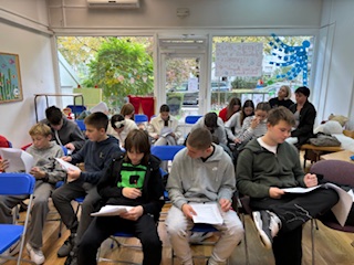 Učenici 7. e razrednog odjela sudjelovali su u četvrtak, 30. listopada u sklopu sata Hrvatskog jezika na izvanučioničkoj nastavi u Knjižnici Augusta Cesarca Ravnice u projektu Lektira za 5+ gdje su razgovarali o lektirnom djelu Pavla Pavličića Trojica u Trnju.