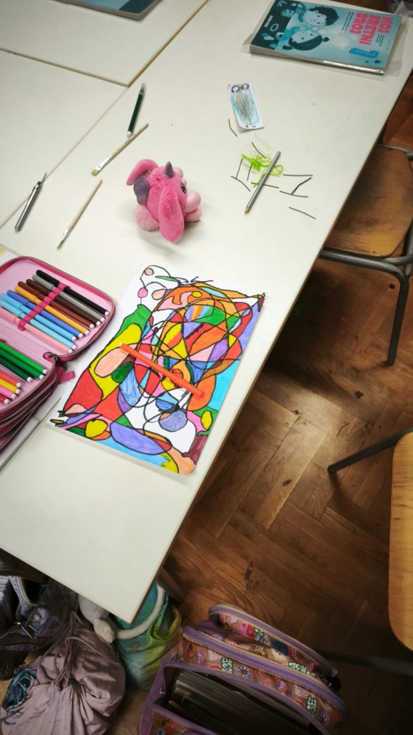 Radionicu o emociji straha osmislila je i vodila vanjska suradnica, gđa Ana Molnar, mag. paed., koja je učenicima pomogla razumjeti što je strah, kada se javlja te kako se s njime možemo nositi. Tijekom radionice pročitala je slikovnicu koju je sama napisala: Klaru je strah ispita, prvu objavljenu logoterapijsku slikovnicu u Hrvatskoj.