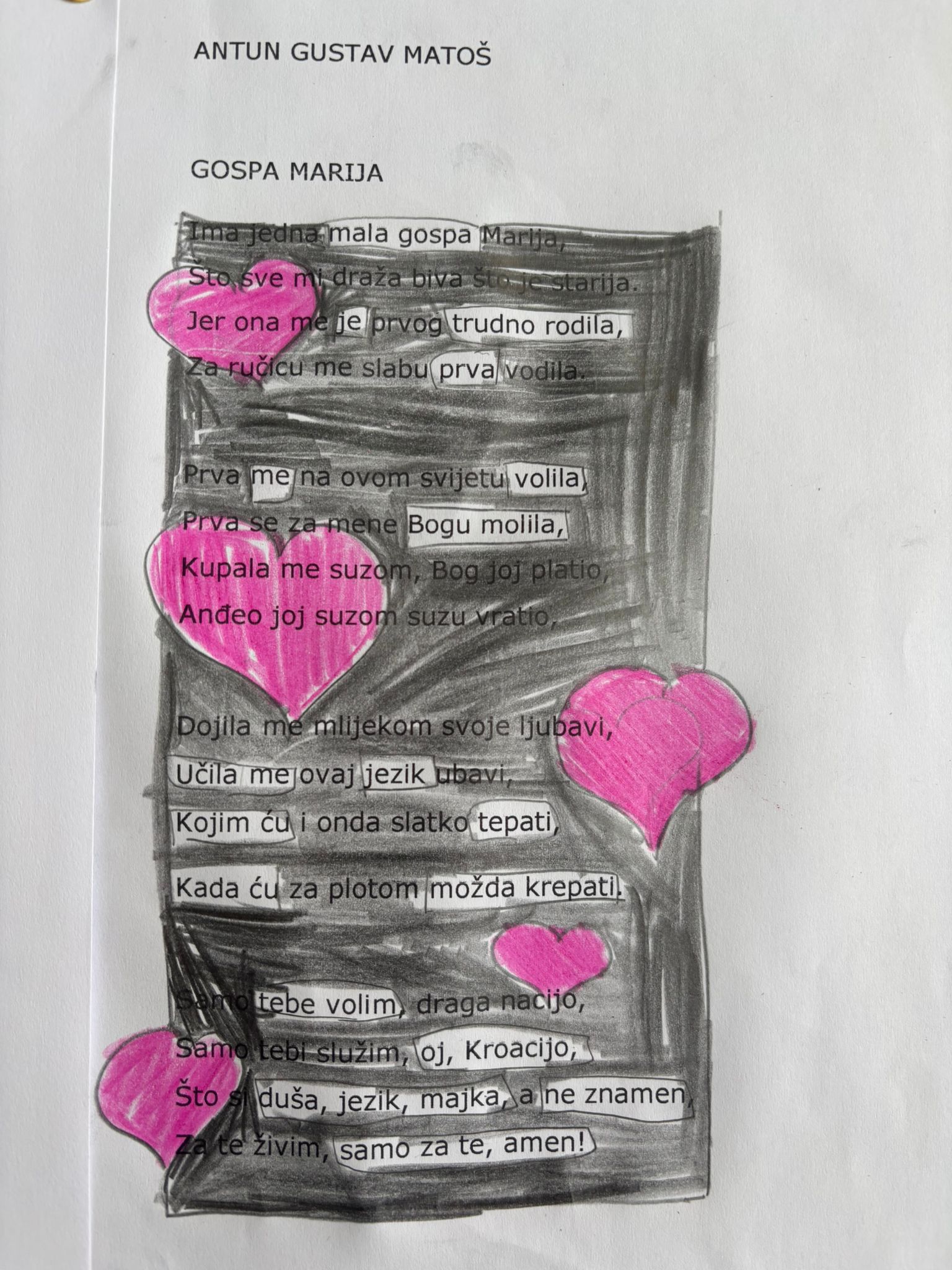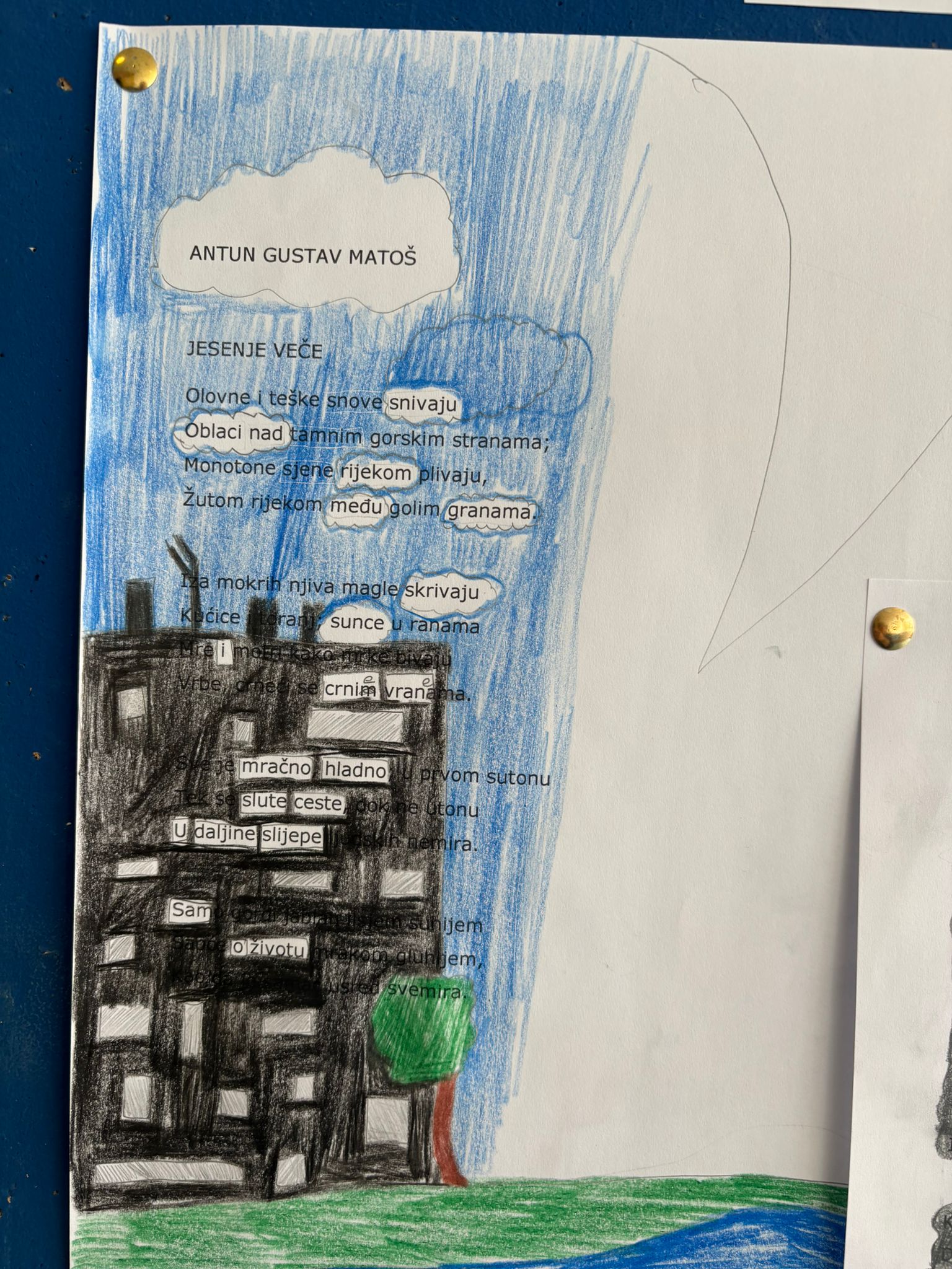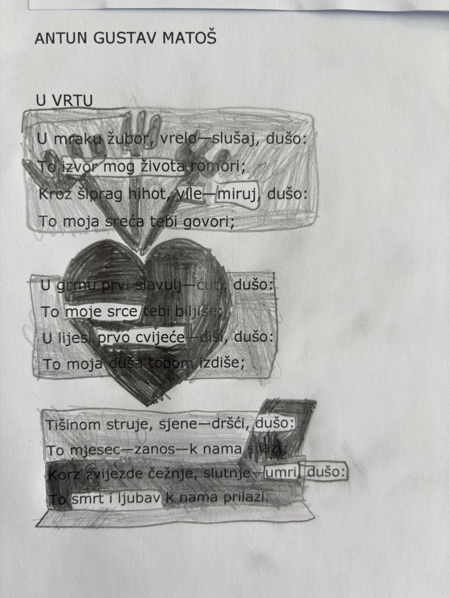 Poseban kreativni doprinos dali su učenici 7. d i 7. e razrednog odjela. Oni su na satu hrvatskoga jezika izrađivali blackout poeziju koristeći Matoševe tekstove. Spajajući suvremenu umjetničku metodu s klasičnim stihovima, stvorili su potpuno nova, vizualno atraktivna lirska djela, pokazavši da je Matoš i danas itekako moderan i inspirativan.