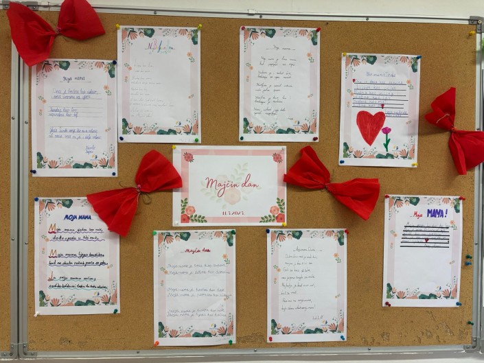 Također, upriličili smo i malu izložbu radova učenika na kojoj su izloženi crteži, pisma i drugi kreativni izrazi kojima su djeca iskazala svoju ljubav prema svojim majkama.