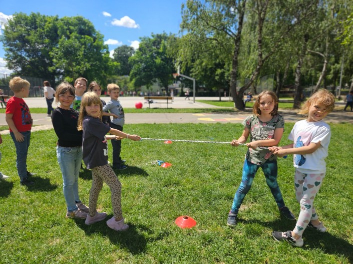 Učenici su pokazali svoje sportske vještine u različitim igrama: nogometu, štafetnim igrama, povlačenju užeta i svima omiljenoj igri graničar.